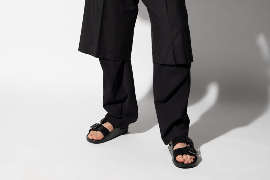 The Balenciaga Mallorcas versus the Birkenstock Arizonas.[/caption]